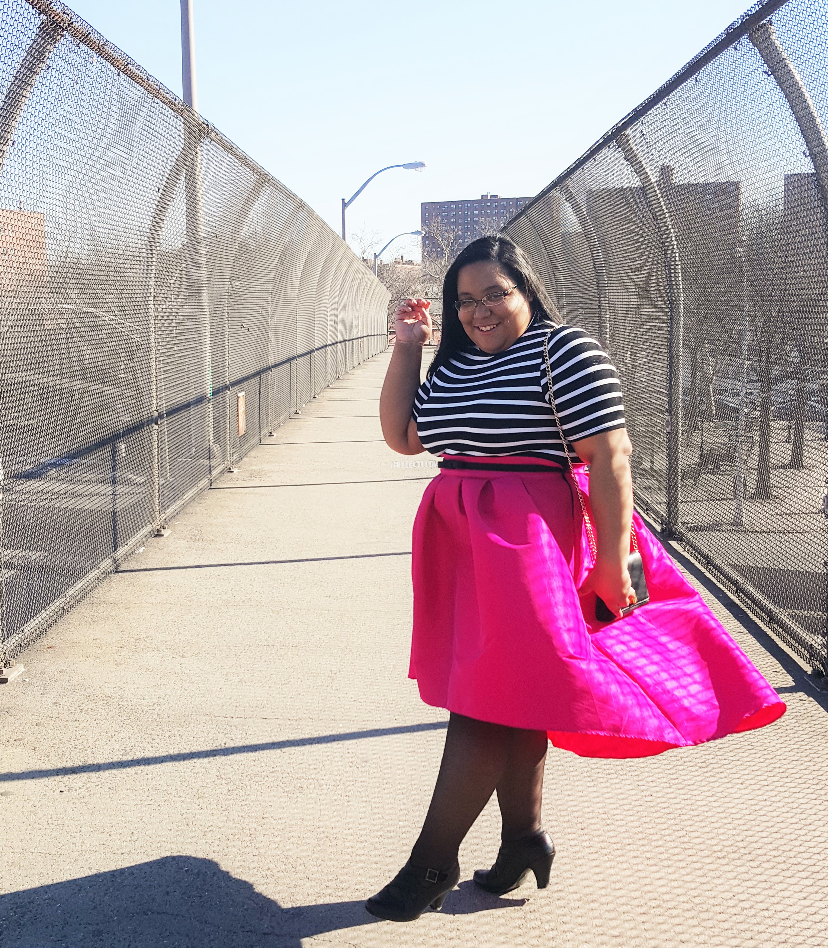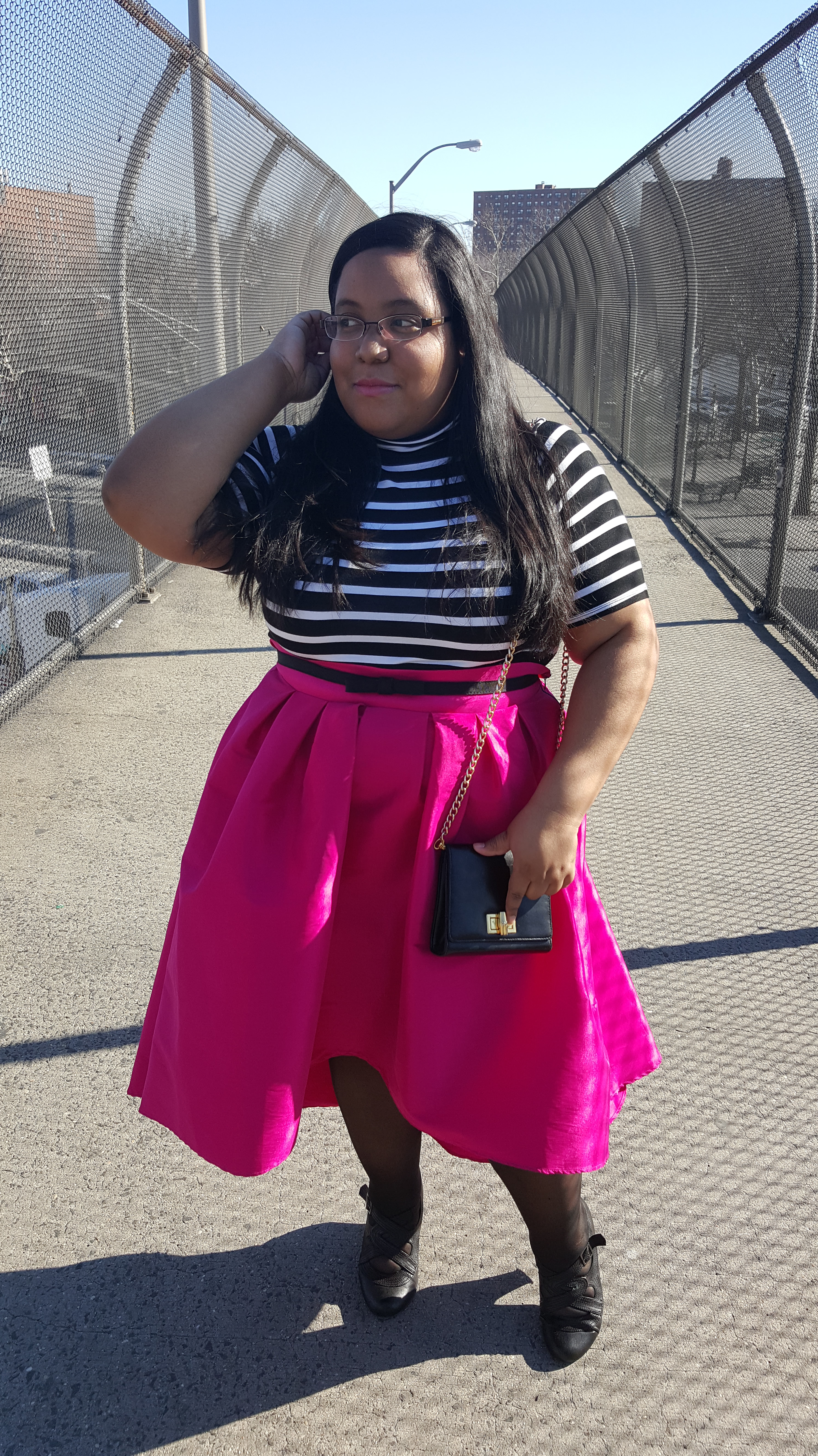 Style notes: Bold color and stripes in the same outfit? I must say breaking two plus size fashion rules at the same time is very gratifying.