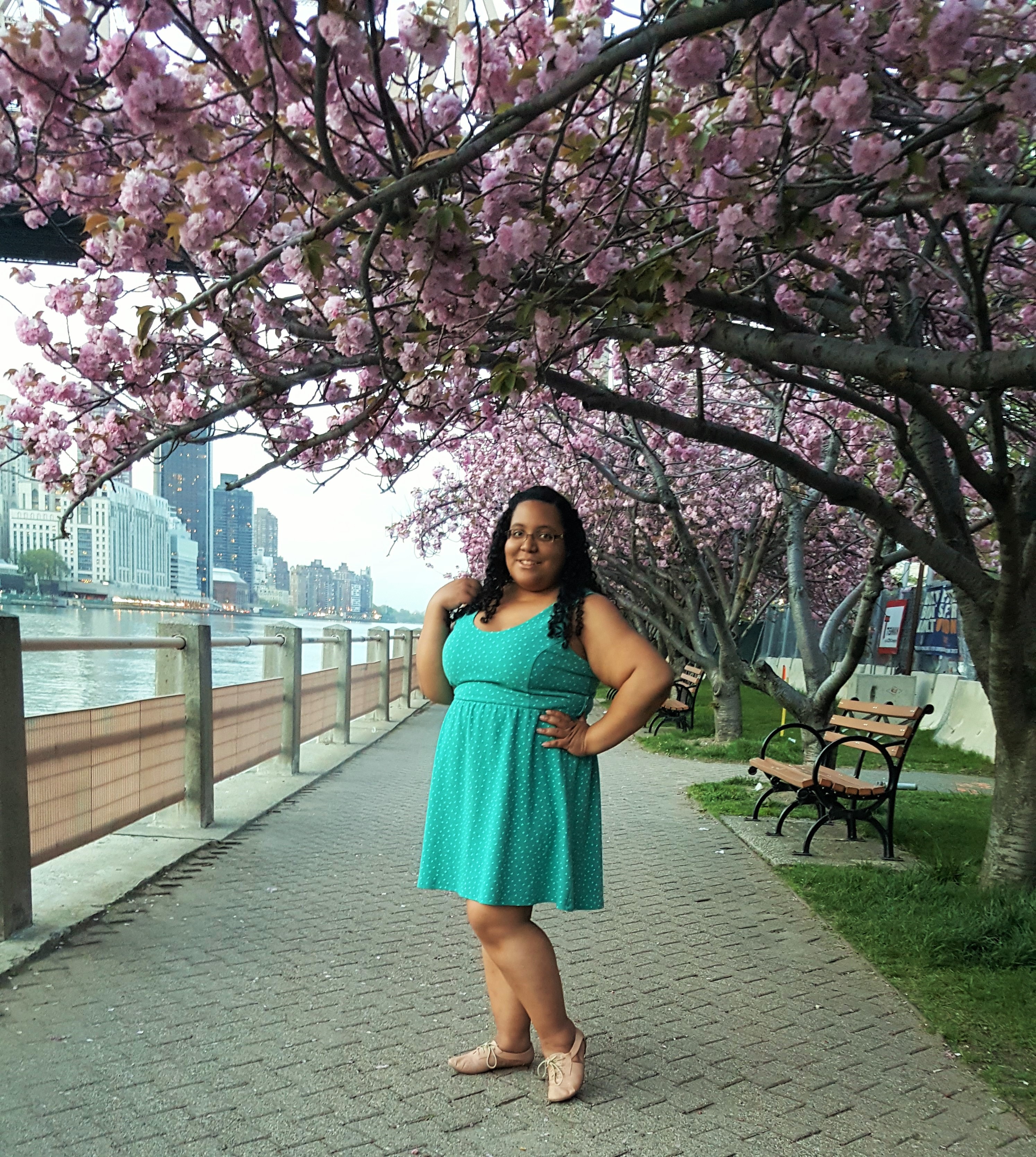 I’ll admit that I own an ever growing collection of fit &flare/skater dresses, but the open crisscross-back of this particular dress was a challenge that I just couldn’t pass up. Growing up plus size meant being continuously told by both family and strangers that I should cover up certain parts of my body, being my arms, thighs and, of course, back rolls. My insecurities kept me away from prints and colors as well as certain styles that draw attention to the aforementioned “problem areas.” While difficult at times, challenging myself to try out pieces I wouldn’t have even dared to five years ago has proven to be the best way to counter the negativity and finally express the beauty I once hid. There is no greater feeling than being unapologetically cute and fabulous, especially with back rolls. In order to keep the focus on this dress I kept thelook casual and simple, pairing it with my natural color lace up oxfords.