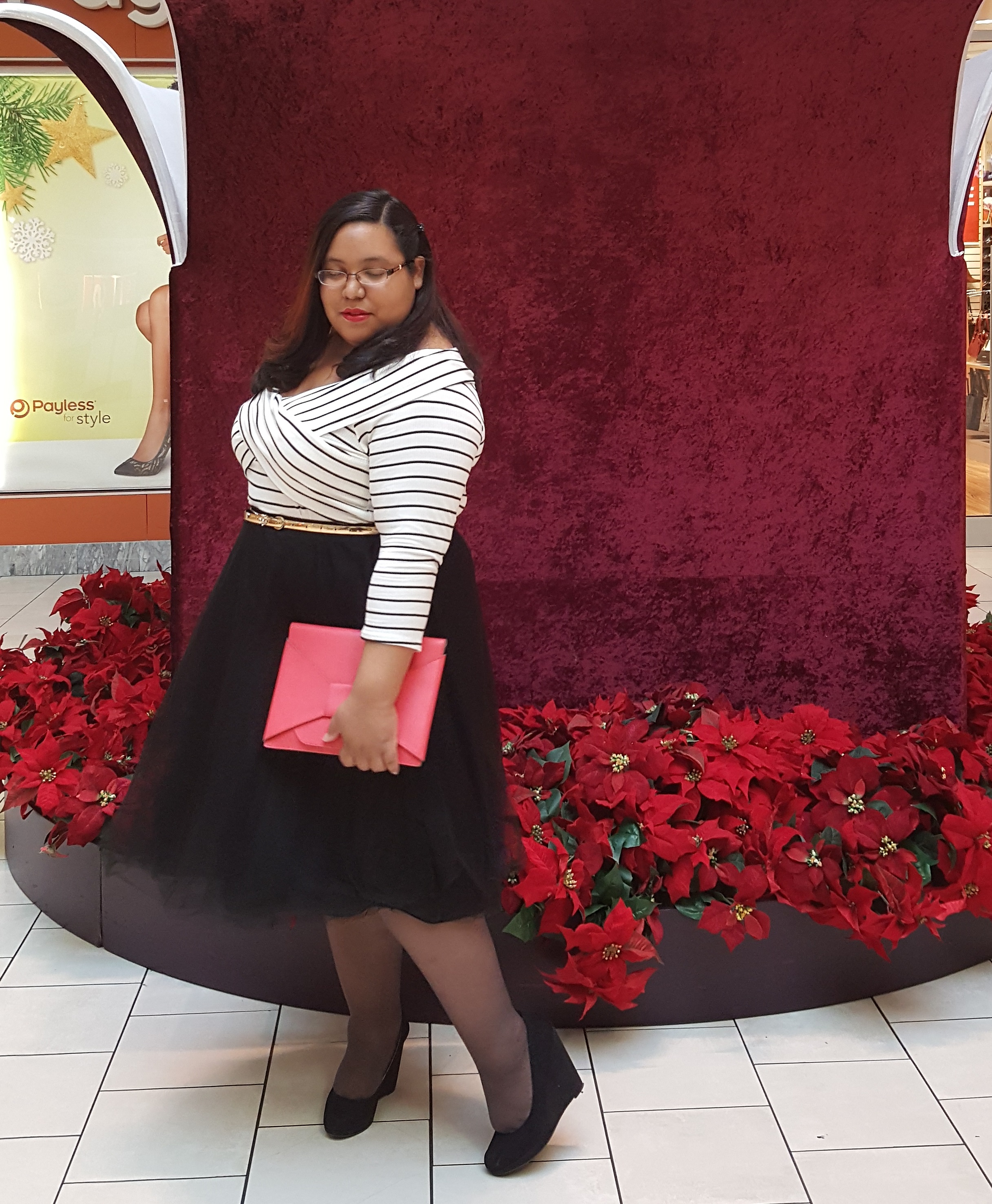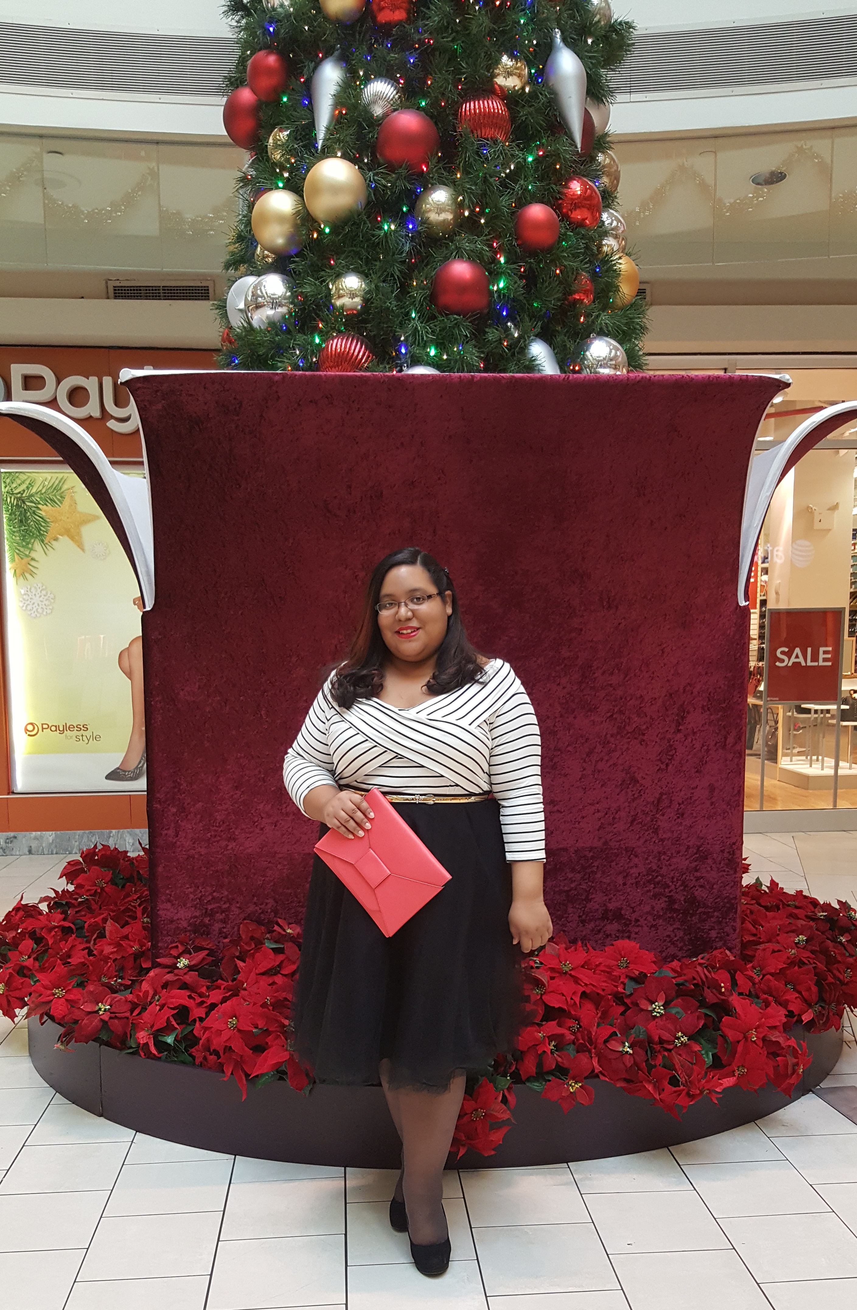 As for the pop of red, I added that with my lipstick and clutch. My brother, the best blog supporter ever, got me this bow clutch as an early Christmas present, saying that I needed a festive accessory for my holiday fashion. He was right, this clutch is a great accent to any holiday outfit, especially if it is monochromatic like mine. The bow just gives it a more elegant festive look that isn’t too cutesy, though it is a soft red compared to the shade of my NYX chaos red lipstick.