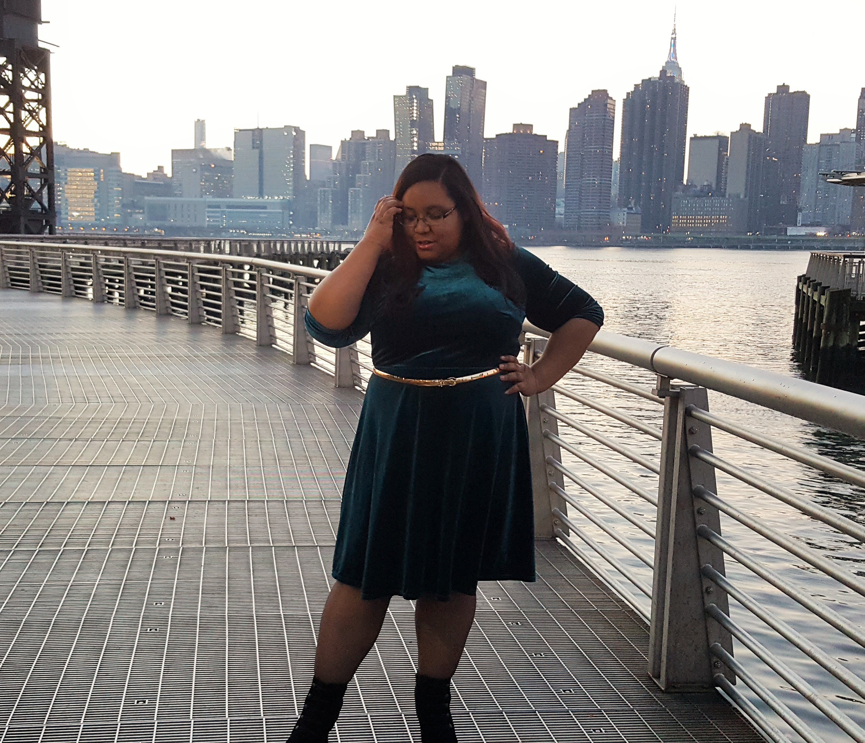 After a month full of nonstop work and holiday events I saved my favorite holiday look for Christmas Eve. I spent the day at church with the family which was followed by a late lunch by the East River before heading into Dyker Heights in Brooklyn to take in some of the gorgeous Christmas light displays. It was a full day, but it was amazing because I got to spend it with my family. What made it even better was this Eloquii dress I purchased as a gift to myself. This dress was everything that I could want for a holiday look — elegant, feminine and festive.