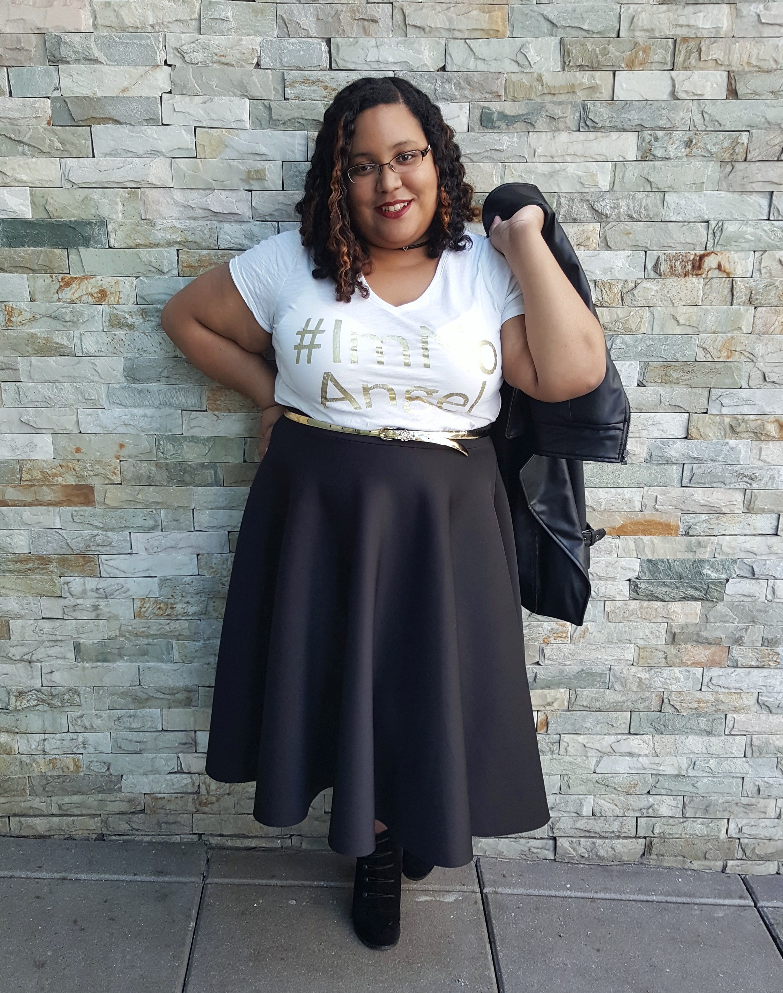 Lane Bryant gifted me this tee to join them in their mission to inspire women to show the world what real, strong, beautiful women look like by sharing pictures that represent our truest selves using the hashtag #ImNoAngel. When it comes to a look that defines my truest self black leather, boots, and lace immediately come to mind and I love the fact that Lane Bryant decided to relaunch this campaign in the fall so that this style could truly shine.