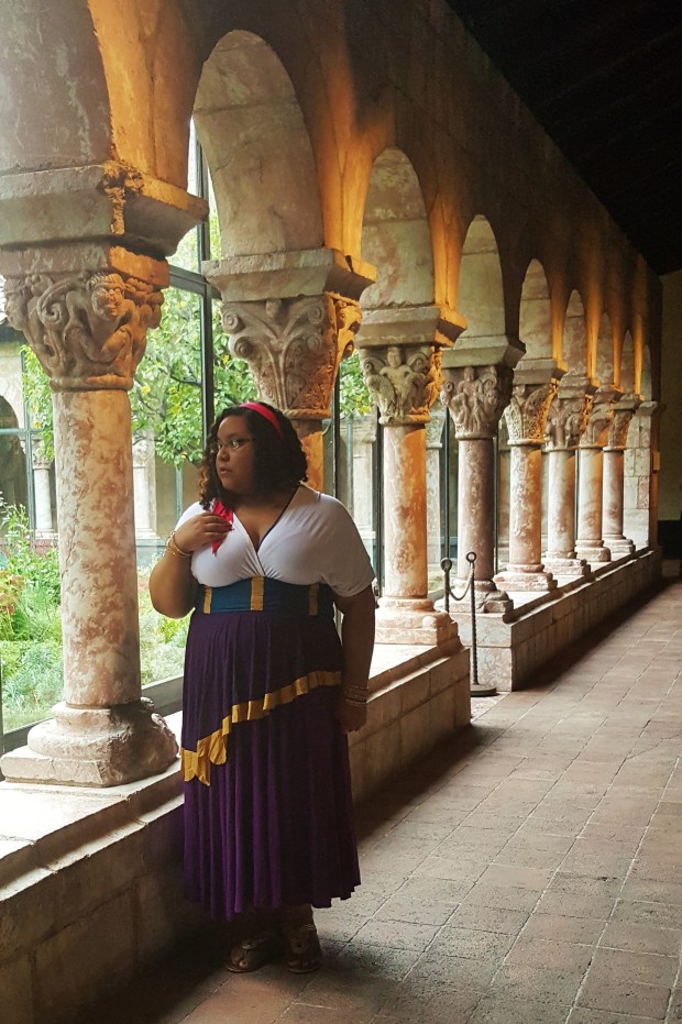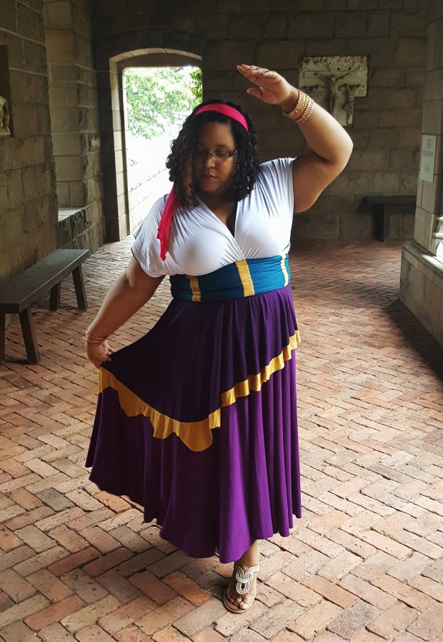 For this reason, when it came time to order my Little Petal convertible dress, I had originally chose the Korra dress because I figured that that was a character I could get away with cosplaying, but when I started communicating with designer, Danielle Ward I changed my mind. As a body positive designer and business owner, she doesn’t believe in things like size limiting who you can dress up as, rather you should think of who you see yourself as. For me that made the decision easy – Esmeralda from Disney’s The Hunchback of Notre Dame.