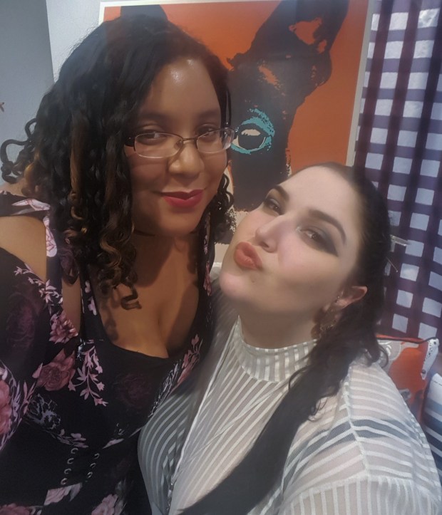 As for what I wore, even though the weather was still riding the summer high with temps in the 90s, I decided to go for more fall-inspired looks for both days, complete with lace up booties! Had the humidity not been as high as it was I would have even thrown on my favorite leather jacket, but alas I had to go without otherwise I would have suffocated, haha. Anyway, for my first look of the weekend I wore this Torrid A-line pleated skirt with a statement crop top. The skirt has some school-girl charm with the ultra violet plaid yet paired with my spiked skinny belt it was “edged up” a bit. One young lady I met said that all my outfit was missing was some black pom poms for a full goth cheerleader vibe. I’ve never once had the word “cheerleader” ever used to describe me so I took this to be a great compliment.