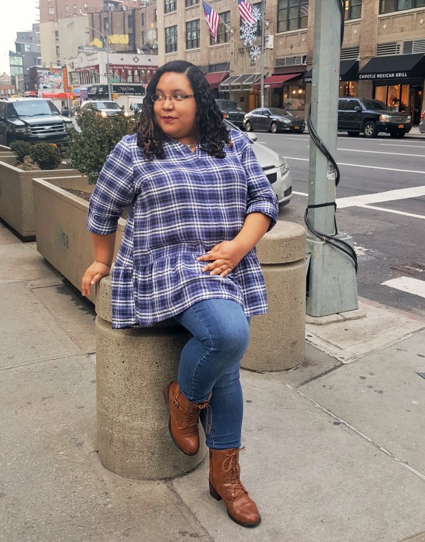 For this Lane Bryant top, I sized up to an 18 to have more room to accommodate my upper-arms, but I also like that this also allowed me to have a more oversized fit that emphasized the high-low ruffle hem. I really like the convertible roll-tab sleeves because that gives me a chance to roll them down should I ever get cold. Combat lace-up boots have become a staple for me I had yet to have a pair in brown so I figured with Avenue having there 50% off boots sale it was a great chance to add some to my collection. Avenue is really my go-to when it comes to boots because they tend to be true wide width so they are stylish and on trend as well as comfortable. Seriously, their shoe collection is not called Cloudwalkers for nothing. If you’re in the market for some wide width boots definitely go check out their sale before it ends which should be soon.