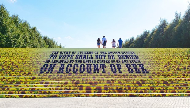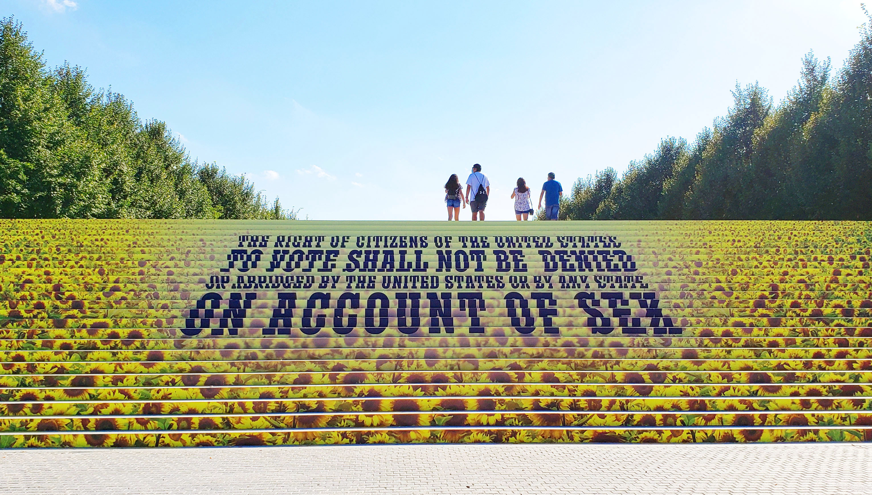 Sunflower Field Installation by the NY Historical Society at Four Freedoms Park to honor 100 years of women’s suffrage.