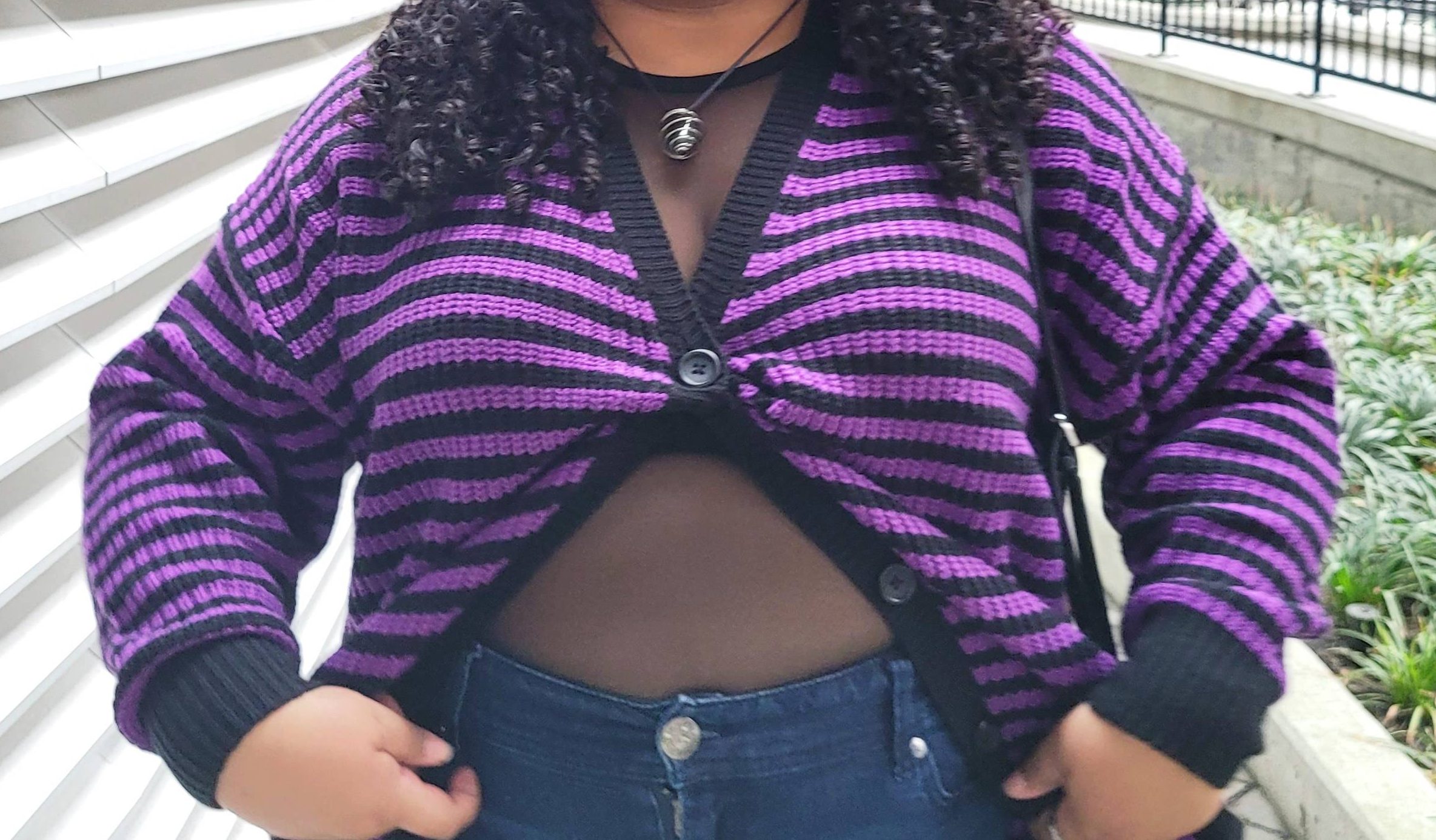 When it comes to trends like this one the options are endless for styling so get creative and make this trend your own. I’m currently thinking up of ways I can incorporate this cardigan for a corporate goth look. It’s been a long time since many of us have been working from an office but I believe that most of us that had office jobs can relate to the need for having a cardigan for those days when the air conditioning would be on full blast during the summer.