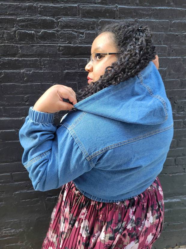 Hooded Crop Denim Jacket (wearing a size 16/1X)