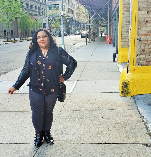 This is why I went with complete comfort over style with this year’s Thanksgiving outfit – just a cute knit sweater and leggings. I am currently obsessed with this plum/grape shade of purple and Torrid seems to be the one place that actually has anything in this color in my size so this drop shoulder cable knit tunic-length sweater was at the top of my “must buy” list as soon as I saw it online. Other than the color, I really love the strappy lace up front detail that brings some sass to what would otherwise be considered a fumpy top. Unfortunately this sweater is sold out in this color but the style is still available in black in limited sizes.