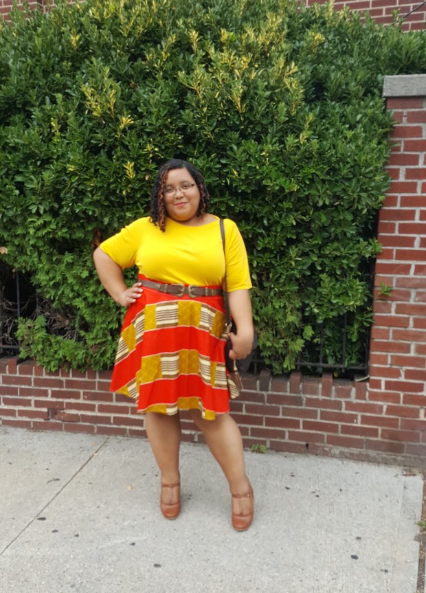I got this skirt at the Curvy Expo during Full Figured Fashion Week this past June from the Obioma fashion booth and I was so excited about this new statement piece that I wore it a little more than two weeks after. I remember the face of my best friend when I descended the stairs to meet her and her hubby at her car to head over to Brooklyn for Curl Fest. They both were stunned to not only see me forgo black but to go for something so bright. I’m still not used to getting compliments but I think I can get used to being greeted with, “You look gorgeous.”